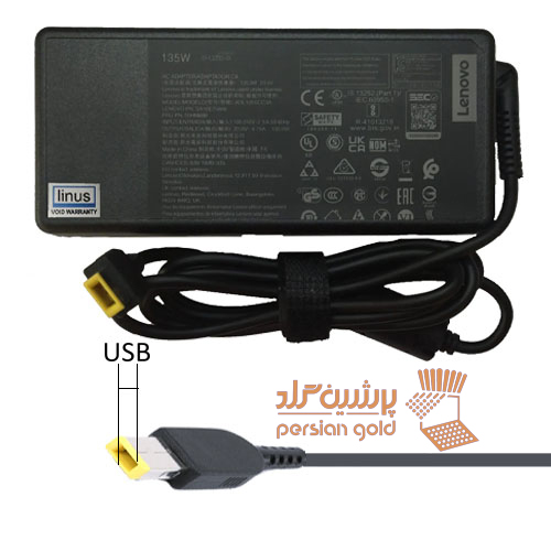 شارژر لپتاپ لنوو گیمینگ 20V 6.75A 135W USB PIN